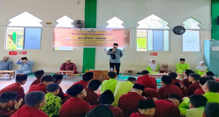 Jum’at, 12 September 2025 Batam – Dalam rangka memperingati Maulid Nabi Muhammad SAW 1447 H / 2025 M, MTsN 1 Batam menyelenggarakan kegiatan keagamaan pada hari Jum’at, 12 September 2025. Acara berlangsung dengan penuh khidmat di Masjid Baitul Ilmi MTsN 1 Batam dan diikuti oleh seluruh peserta didik, pendidik serta tenaga kependidikan MTsN 1 Batam.